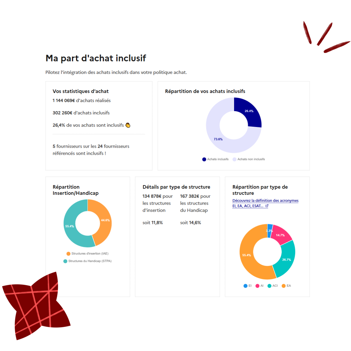 Pilotez et structurez vos achats inclusifs grâce à un tableau de bord clair et exploitable